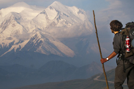 The park's dynamic glaciated landscape supports a diversity of wildlife, including grizzly bears, caribou, wolves, Dall sheep and moose. Birds and wildflowers grace summer slopes. Visitors enjoy sightseeing, backpacking, and mountaineering. Whether climbing or admiring, the crowning jewel is North America's highest peak, the awe-inspiring, 20,320 foot Mount McKinley.